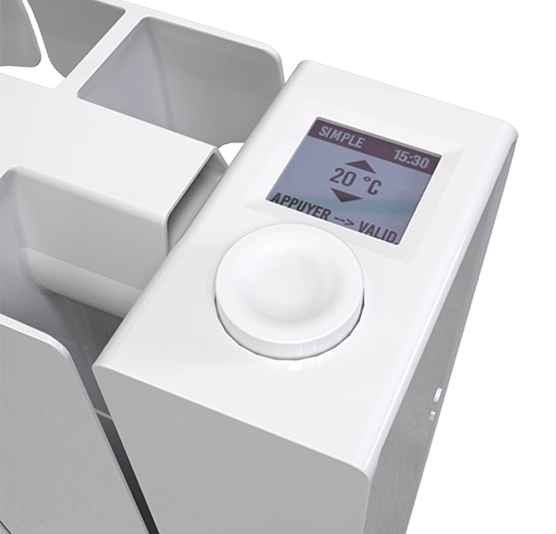 Radiátor z hlíníkové slitiny nabízí jednoduchý design snoubící se s vysokou efektivitou a účinností. Radiátor je vybaven LCD displejem, na němž lze nastavit denní a týdenní program s adaptivním startem či sledovat spotřebu energie.