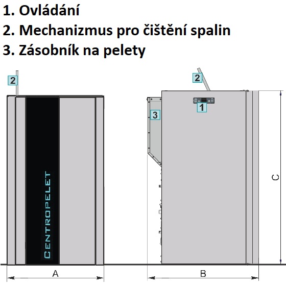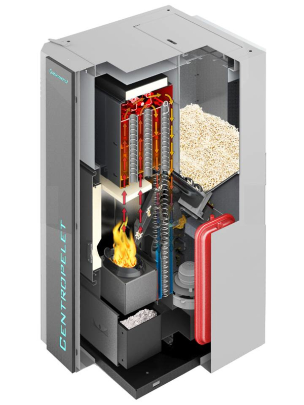 CentroPelet jsou kompaktní teplovodní kotle na dřevěné pelety určeny pro ústřední vytápění malých a středně velkých prostor. Jsou vyrobeny z oceli, mají modení design a vynikající vysokou účinností provozu. Kotle mají zabudovaný hořák na spalování dřevěných pelet s funkcí automatického zapalování a digitální ovládání kotle, které řídí ventilátor spalin v závislosti na teplotě spalin a kotlové vody. Tato zařízení jsou dodávána se zabudovaným čerpadlem, pojistným ventilem, odvzdušňovacím ventilem, tlakovým spínačem a expanzní nádobou. Nádrž na pelety je nedílnou součástí kotle.